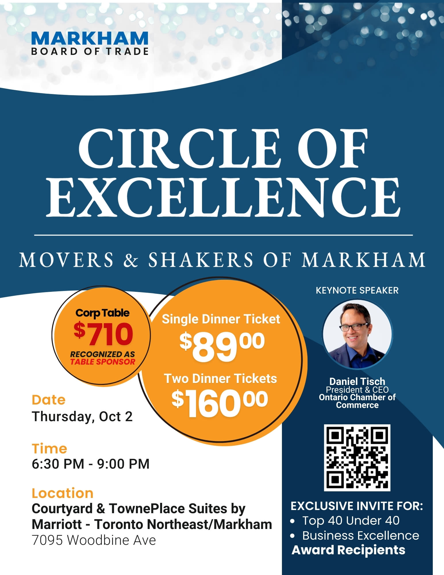 The evening will feature high-level networking, recognition of leadership, and meaningful conversations that celebrate excellence and help shape the future of Markham’s business community.