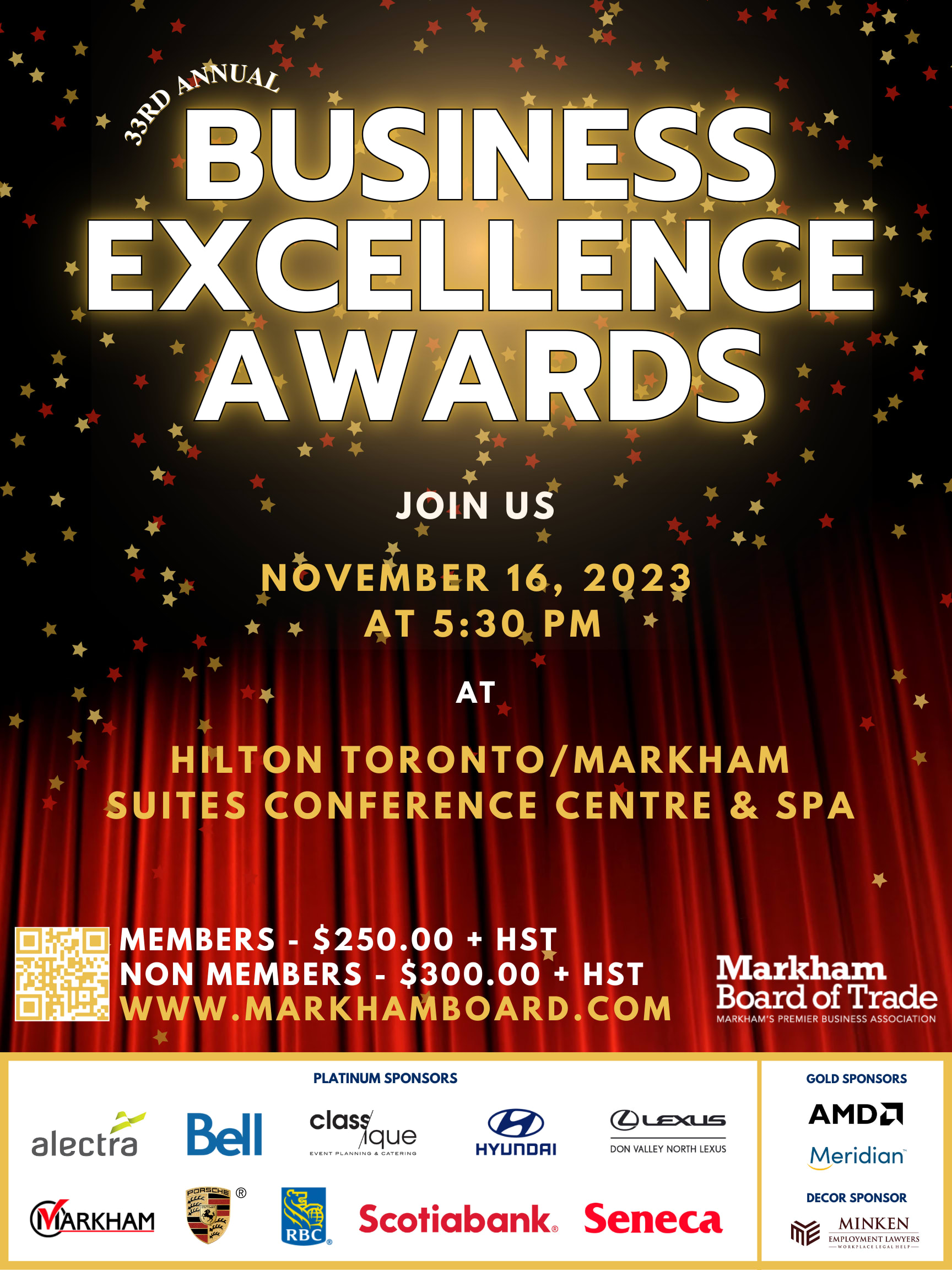 We are pleased to welcome you to The 33rd Annual Business Excellence Awards, an annual celebration of entrepreneurial spirit, success, and ingenuity where the Markham community comes together to acknowledge the success of local businesses. Don't miss the opportunity to celebrate our nominees!