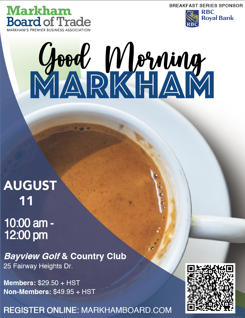 By registering for a Markham Board of Trade networking event, we reserve the right to share your contact information with other attendees
