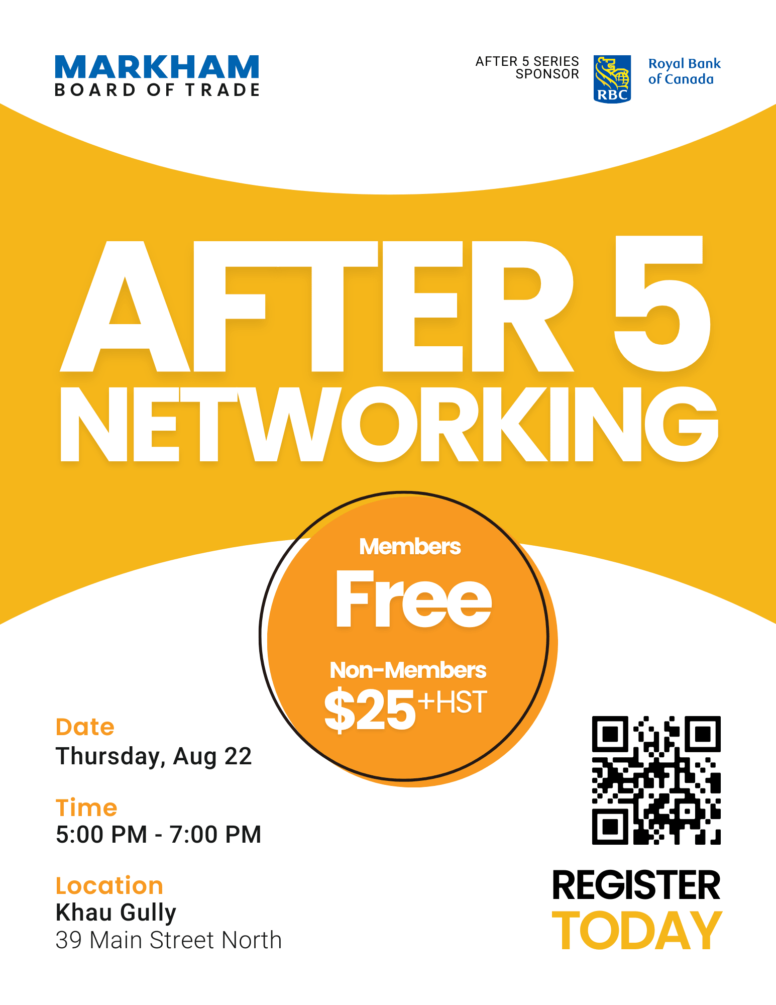 By registering for a Markham Board of Trade networking event, we reserve the right to share your contact information with other attendees.