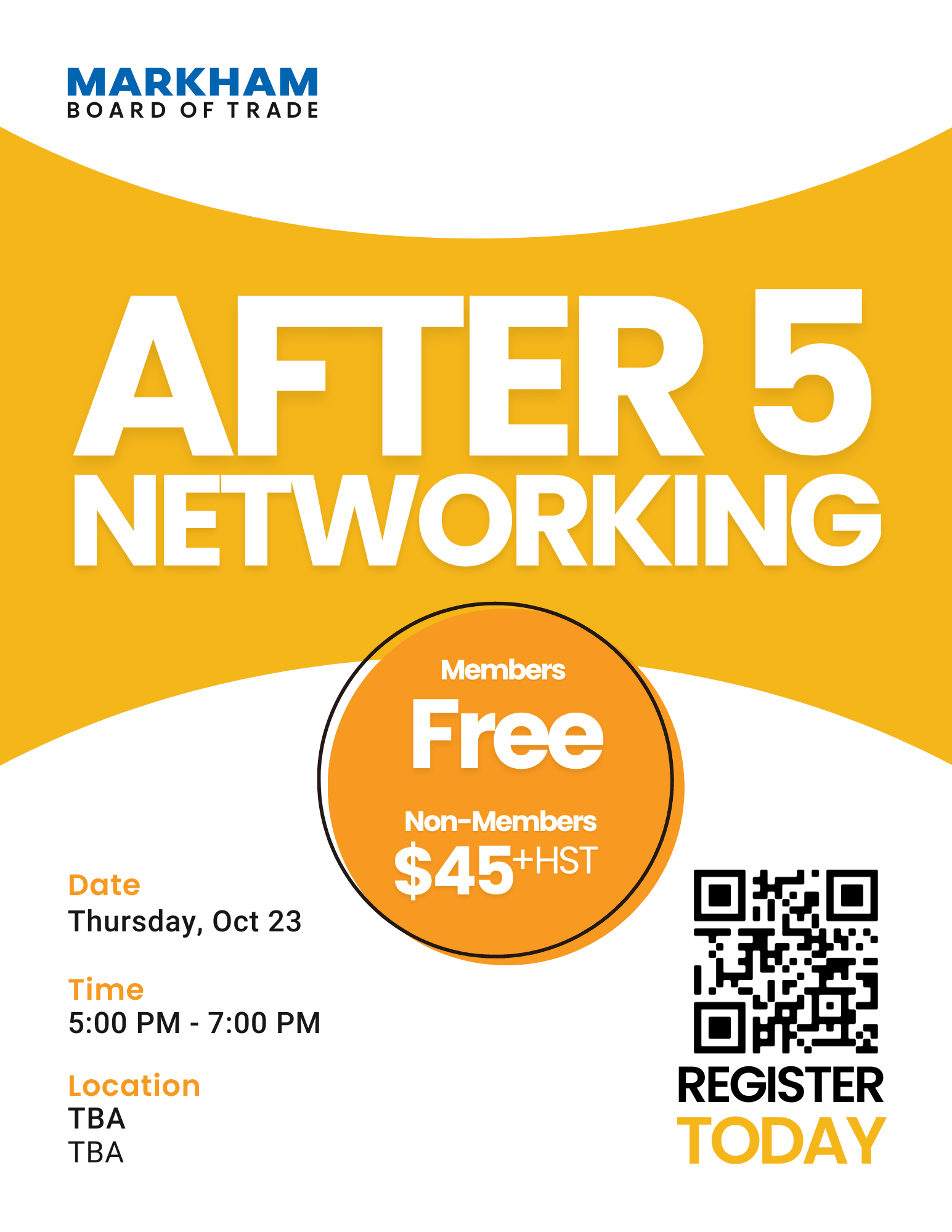 By registering for a Markham Board of Trade networking event, we reserve the right to share your contact information with other attendees.